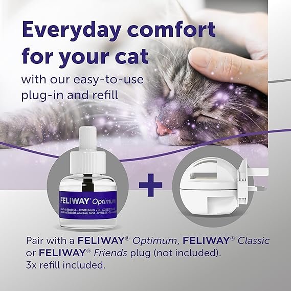 - 3 FELIWAY Optimum REFILLS: The FELIWAY Optimum refill value pack contains 3 x 48ml refills, compatible with a FELIWAY Optimum diffuser
