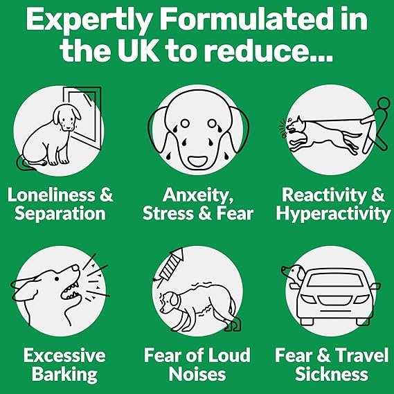 - UK’s Most Loved Calming Chew (5,000+ 5* Website Reviews) – Tasty supplements that reduce your dog’s Anxiety, Stress, Hyperactivity, Reactivity, Barking & Fear